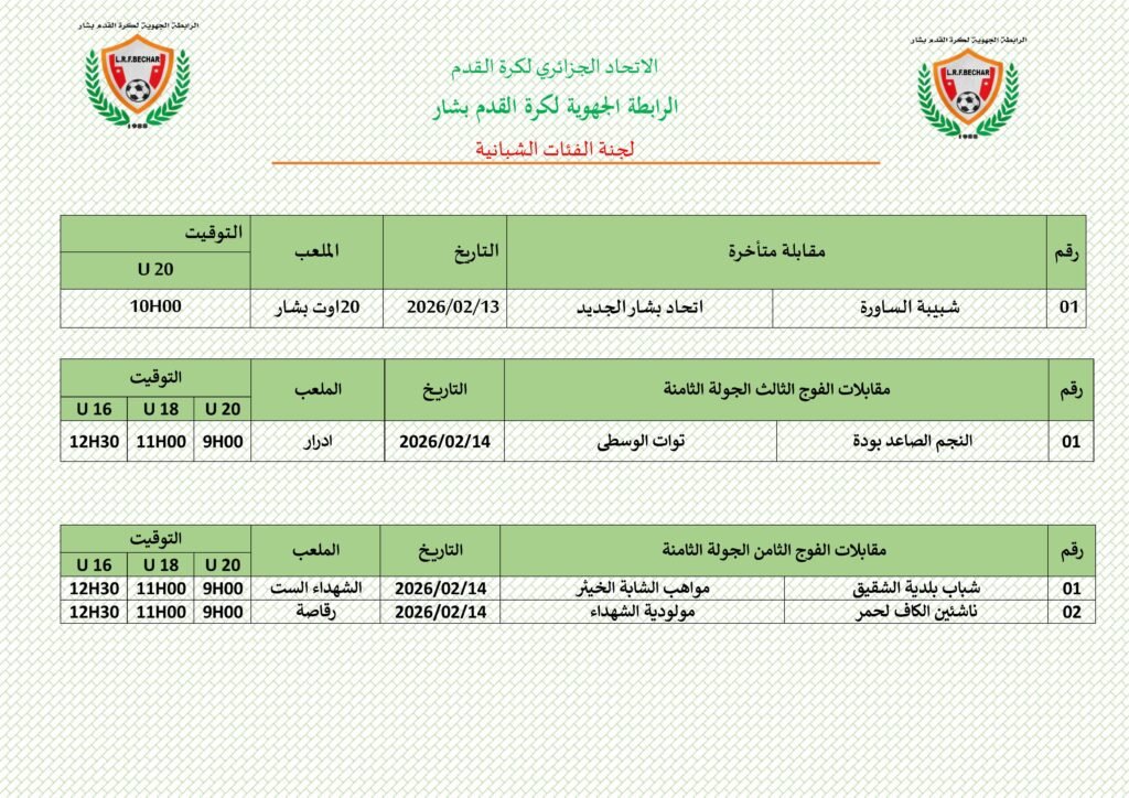 برمجة المقابلات المتأخرة للفئات الشبانية